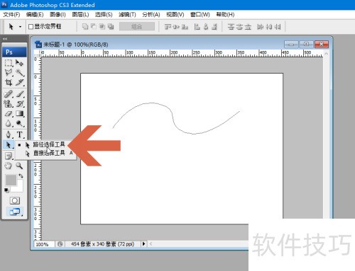 1、 使用Photoshop工具栏中的路径选择工具进行操作。