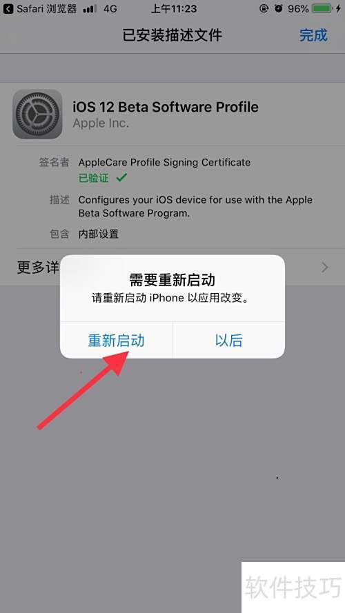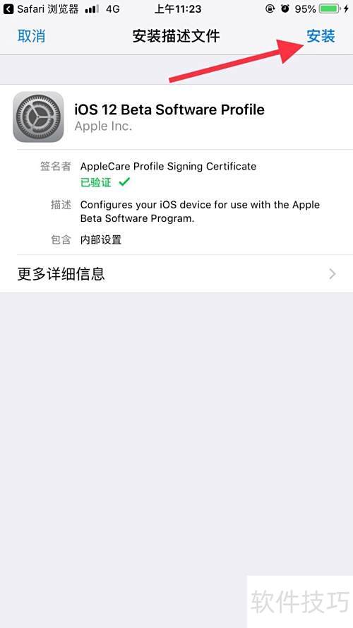 1、 打开指定网址,进入网页界面后,找到并点击iOS 12 beta(16A5288q)的描述文件进行安装。