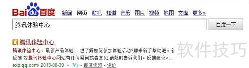 1、 在百度搜索栏输入腾讯体验中心,然后点击百度一下进行查询。