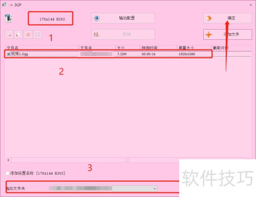 10、 在3GP转换设置界面,核对参数配置无误后,点击确认完成操作。