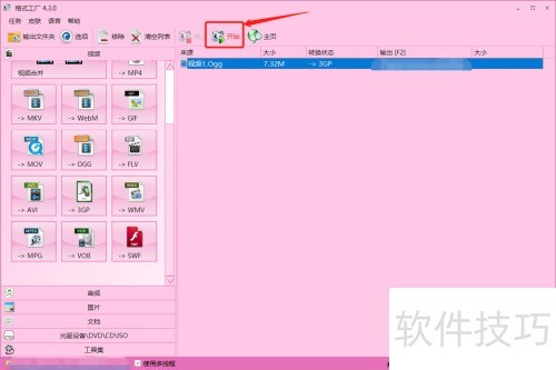 12、 回到软件主界面,检查转换信息无误后,点击工具栏开始按钮,启动转换过程。