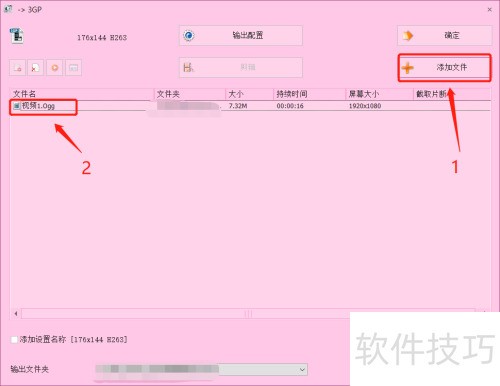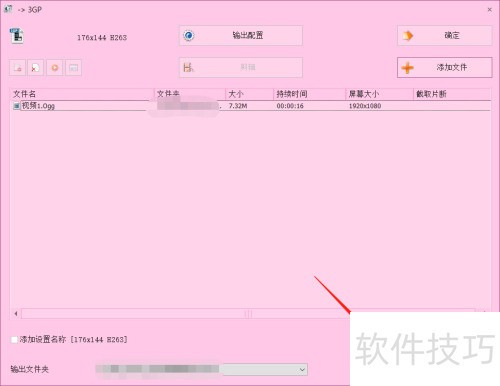6、 在3GP转换界面,点击输出配置,按所需文件属性选择相应编码设置。