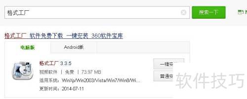 1、 在百度搜索格式工厂,会出现大量结果,任选一个即可下载安装。我使用的是3.3.5版本,下载和安装速度都很迅速。