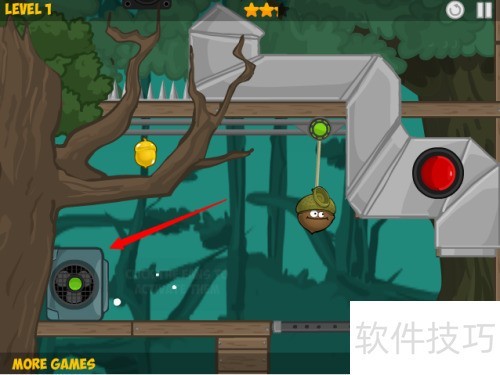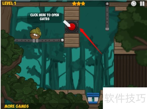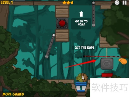2、 点击红色箭头所示的第一关开始游戏。