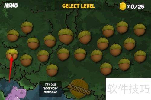 1、 点击红色箭头选择关卡进入下一步。