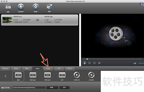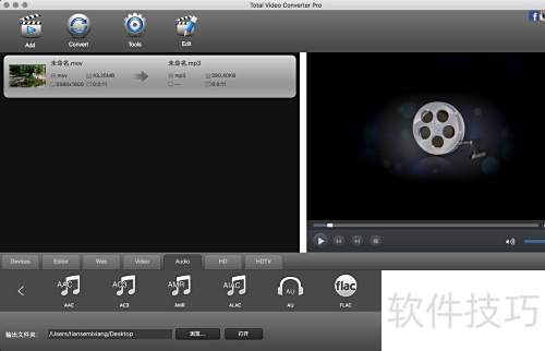3、 将视频文件拖至软件左侧窗口,随后点击音频选项即可处理。
