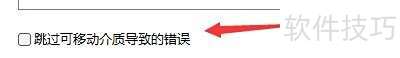 4、 在排除列表界面,选中跳过可移动介质错误选项。