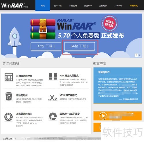 2、 进入官网后,点击顶部的按钮。请根据电脑系统选择对应版本,目前多数新电脑均为64位系统,务必确认后下载安装。