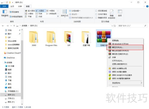 6、 右键点击压缩文件,选择解压到指定文件夹。
