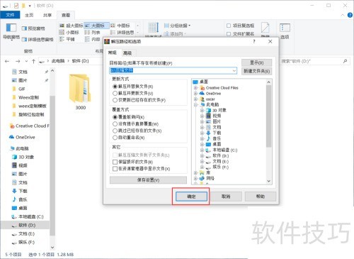 7、 在解压路径和选项界面,直接点击确定按钮即可。