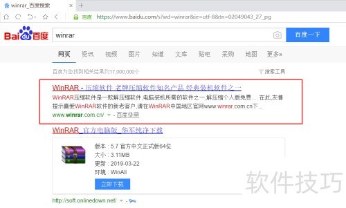 1、 在浏览器中搜索winrar,找到搜索结果中的官方网站并点击进入。