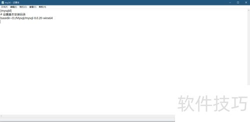 5、 由于MySQL压缩包的默认安装路径通常为C:mysql,而通过安装程序默认会部署在C:Program FilesMySQL目录下,但本次我们将MySQL安装在D盘。因此,必须手动指定MySQL的服务启动基础目录。该基础目录应指向实际解压后的文件夹位置,即D:Mysqlmysql-8.0.20-winx64。在Windows系统中,路径分隔符推荐使用反斜杠表示,若使用正斜杠/可能会导致识别异常,因此需确保路径格式正确。为完成配置,需要在MySQL的配置文件中添加基础目录设置项,具体写法为basedir=D:Mysqlmysql-8.0.20-winx64。此步骤是确保MySQL服务能够正确识别安装路径并顺利启动的关键环节,若未正确设置,可能导致服务无法初始化或启动失败。务必保证路径拼写无误,且目录实际存在。