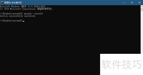 14、 以管理员身份打开命令提示符,执行mysqld --install命令,将MySQL注册为系统服务,实现后台运行。