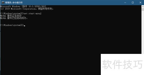 15、 在命令提示符中输入net start mysql来启动服务,或通过服务管理界面找到MySQL并手动启动。