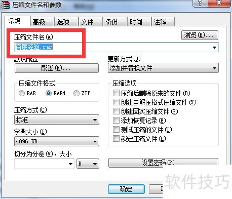 5、 将压缩文件命名为RAR格式,随后点击确定即可。