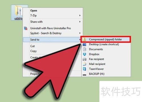 2、 右键点击文件夹,将鼠标移至发送到选项,出现子菜单后选择压缩(zipped)文件夹即可完成压缩操作。