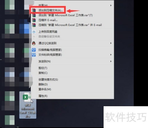 1、 在桌面选中加密文件,右键点击添加到压缩文件即可完成操作。