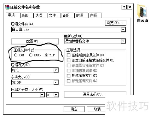 3、 右键点击该文件夹,选择添加到压缩文件,在弹出窗口中设置压缩格式为ZIP,然后确认即可完成压缩操作。