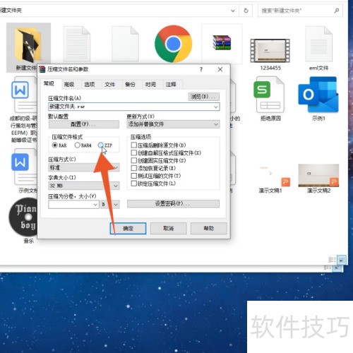 12、 进入下一界面后,选择压缩格式并勾选ZIP选项。