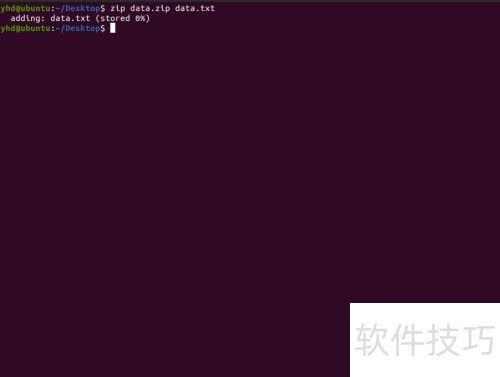 3、 第三步,通过zip命令将data.txt文件压缩为data.zip。