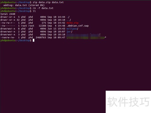 3、 第三步,通过zip命令将data.txt文件压缩为...