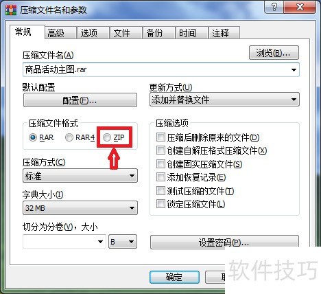 2、 请在下方窗口选择文件压缩格式为ZIP。