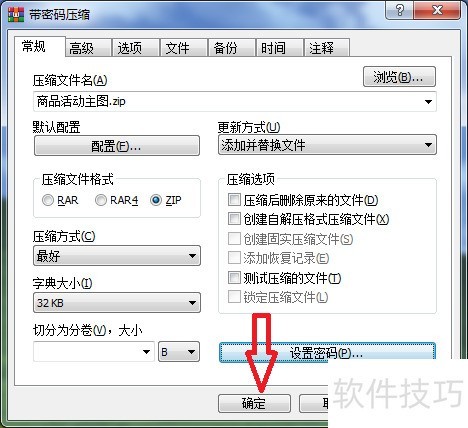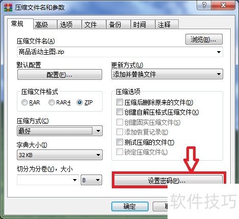 4、 如需加密压缩文件,请点击设置密码,输入密码后...