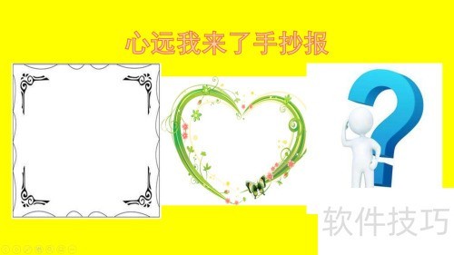 2、 左侧绘制边框,框内书写心远我来了的核心内容。