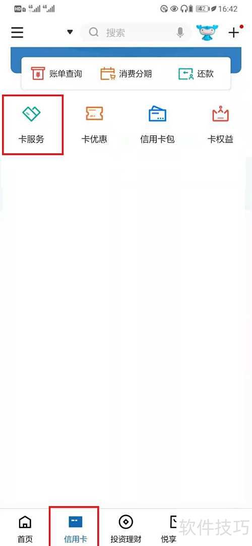 1、 登录中国建设银行APP,进入信用卡或卡服务页面。