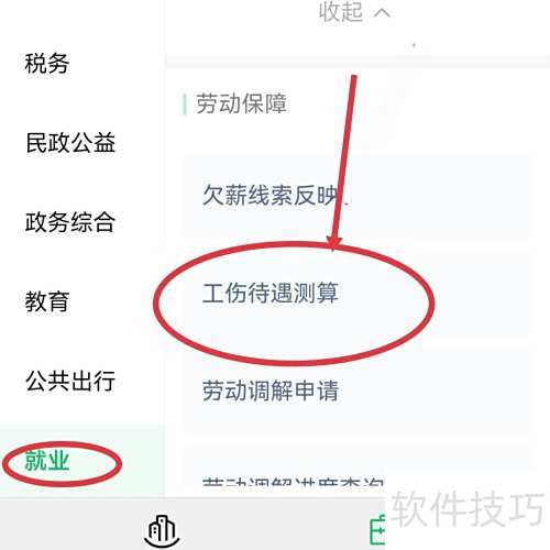 3、 进入政务综合,选取工伤待遇测算,填写信息后即可完成计算。