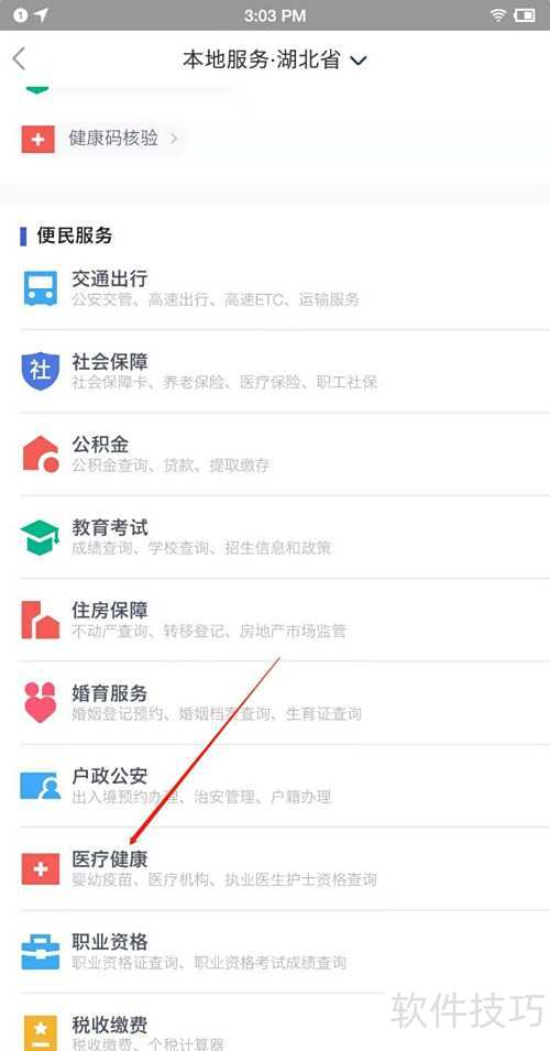 2、 进入本地服务,选择医疗健康选项