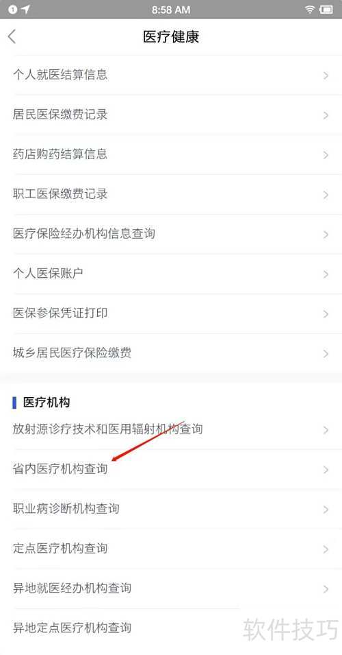 3、 进入页面后选择省内医疗机构查询功能。