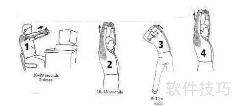 7、 若无法多走动,可在办公位进行简单运动,适度伸展身体以缓解疲劳。