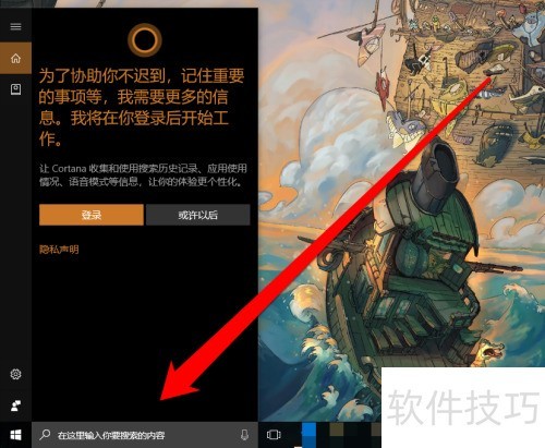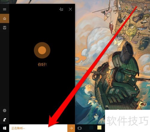 1、 进入Win10桌面后,点击语音助手对话框即可。