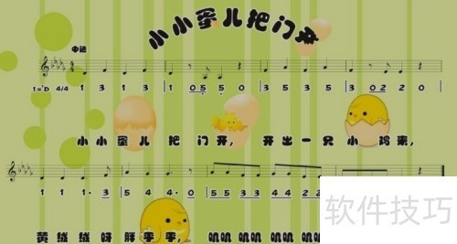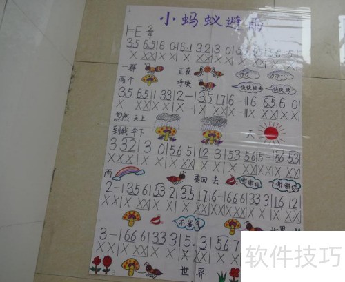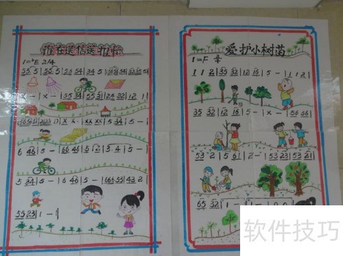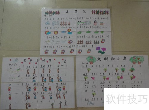 2、 在乐谱行距中添加幼儿易懂的图案,可用手绘或剪贴形式呈现。