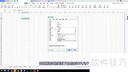 选中目标日期,右键选择设置单元格格式,找到2001/3/7样式,确认即可完成设置。