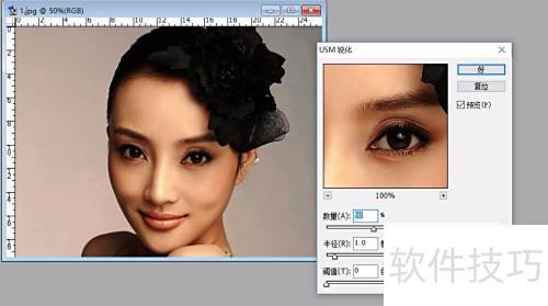 3、 通过应用滤镜中的锐化功能,可增强照片人物的细节表现,使图像更加清晰生动。