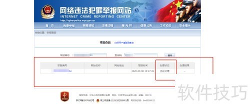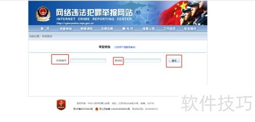 6、 点击举报查询进入页面,输入查询码与举报编码,即可查看处理结果。