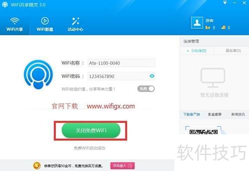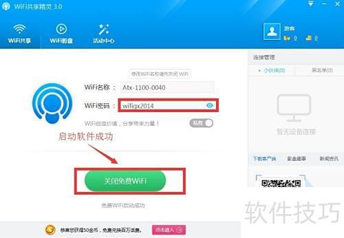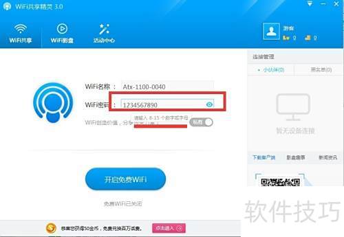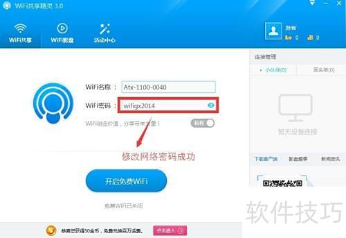 4、 关闭WiFi共享精灵3.0后修改密码,重新启动程序即可生效。