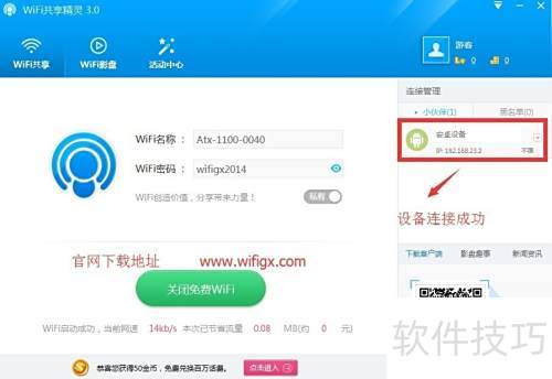 WiFi共享精灵3.0是一款利用电脑无线网卡实现网络共享的工具。只需简单设置,即可将笔记本电脑变为无线热点,让手机、平板等设备共享上网。无需依赖服务器,支持信息收发功能。只要所在区域有WiFi信号,即可通过无线网络连接设备,实现多人共享网络,畅享免费上网体验。