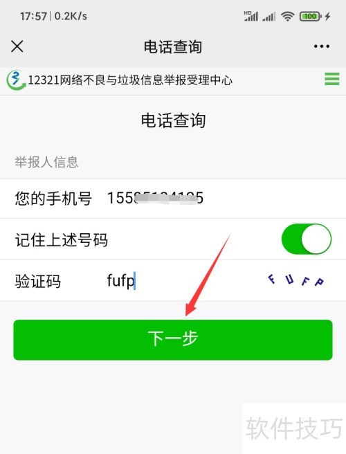 6、 点击底部查询按钮,输入手机号并获取验证码,即可查看举报处理结果。