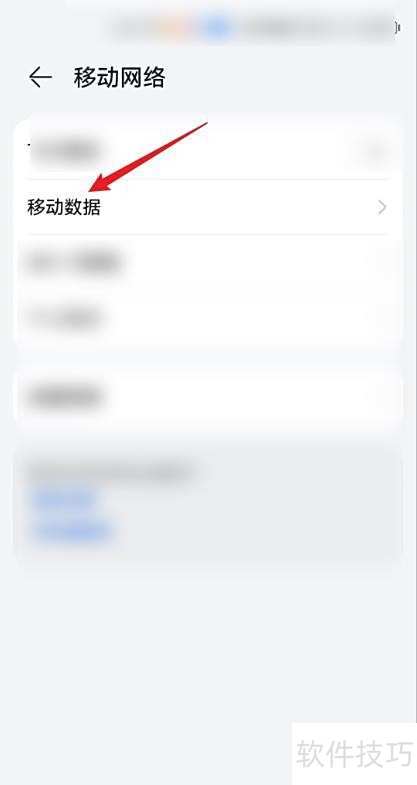 2、 进入移动网络,选择并开启移动数据。
