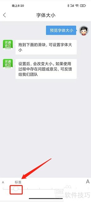 8、 进入字体设置界面,拖动滑块调整字号大小。
