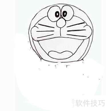 1、 先勾勒出机器猫头部的外形。