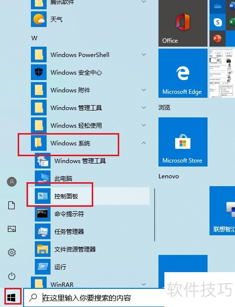 1、 点击开始菜单,选择Windows系统,进入控制面板。