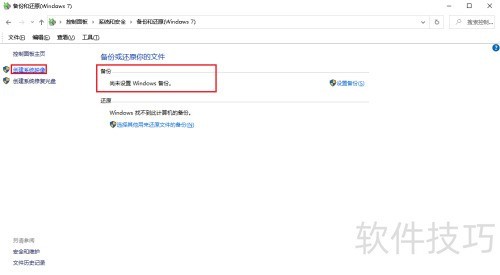 3、 弹出对话框后,从右侧边栏可见电脑尚未进行系统备份,需及时操作。点击创建系统映像即可开始备份过程。