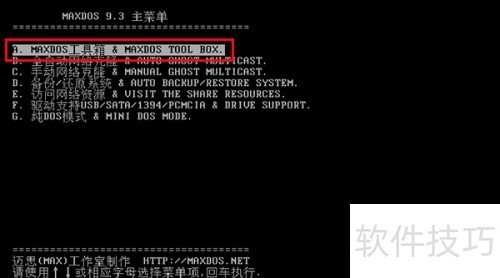 3、 接着选择A.maxdos工具箱选项,按下回车键运行,操作所示。
