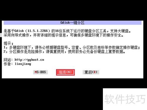 5、 在gdisk一键分区工具的提示界面中,点击继续按钮,操作所示。