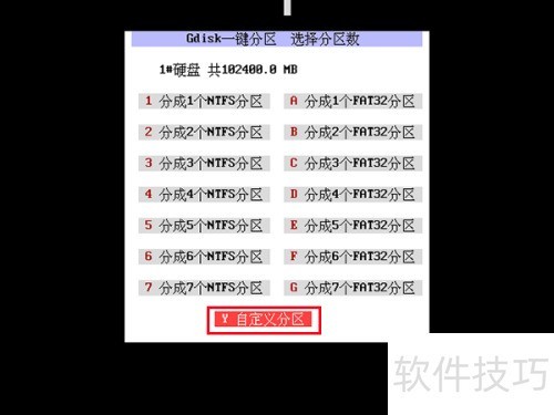 8、 选择分区数量时,我们采用自定义方式,便于演示,具体操作所示。