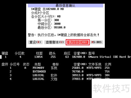10、 采用相同方式配置其余分区时需注意,gdisk一键分区工具的自定义功能最多支持划分10个分区。当磁盘空间耗尽后,工具将自动显示分区结果,确认信息准确无误后,点击执行分区按钮即可完成操作,具体界面所示。